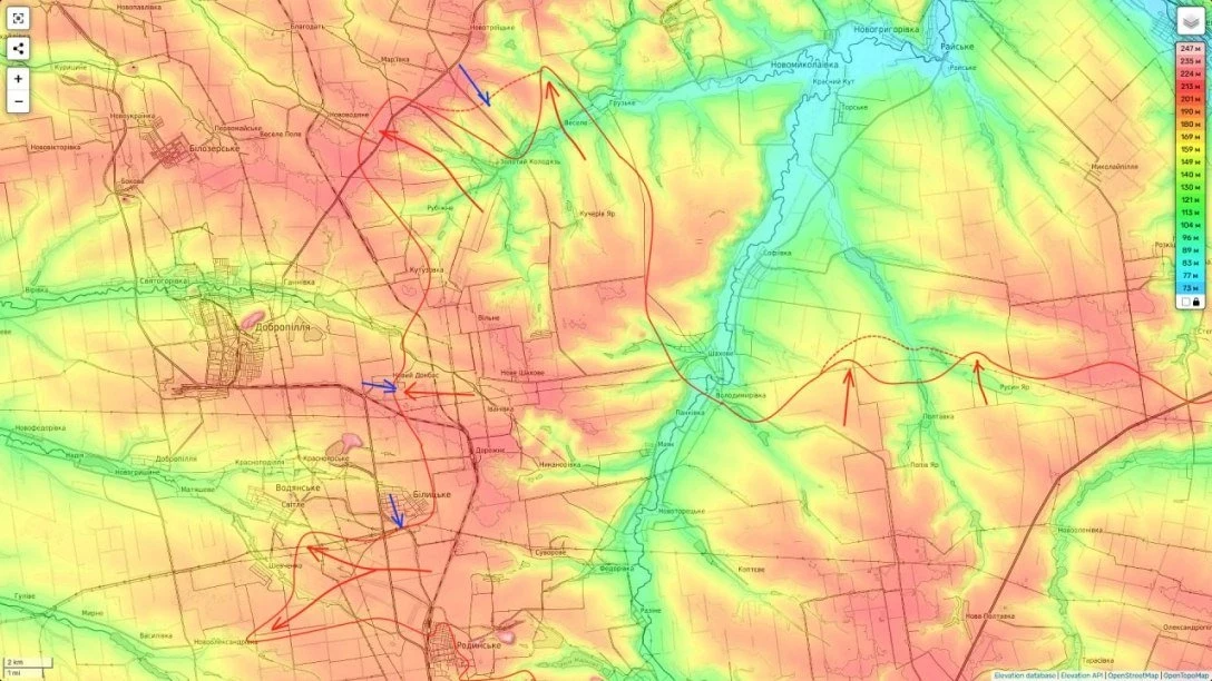 "Украинские ТГ группы Доброполья, описывая ситуацию вокруг города пишут, что н.п. Золотой Колодезь не только полностью под ВС РФ, но что и там уже прошла зачистка. А люди, которые там остались спокойно живут. А "орки" даже не обрезали поставку воды в Доброполье (не знаю как это вяжется с вражеской пропагандой, которая внушает своему населению, что наша армия якобы "убивает и насилует всех подряд")" - написал Подоляка, приложив соответствующую карту боевых действий.