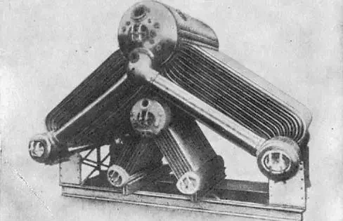 Водотрубный котёл эсминца «Новик» (внизу для сравнения помещён аналогичный котёл итальянского миноносца)