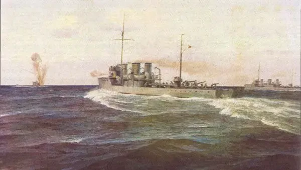 Не менее интересно, что «Новик» 17 августа в одиночку вступил в бой с двумя своими немецкими «клонами» — V-99 и V-100 в Рижском заливе. И вышел победителем! Русские 102-мм пушки оказались лучше немецких 88-мм орудий, стоявших на «зерстрорерах», V-99 получил повреждения настолько серьёзные, что лишился хода и был снесён на мины, после чего его история трагически завершилась. История остальных завершилась самозатоплением в Скапа-Флоу.