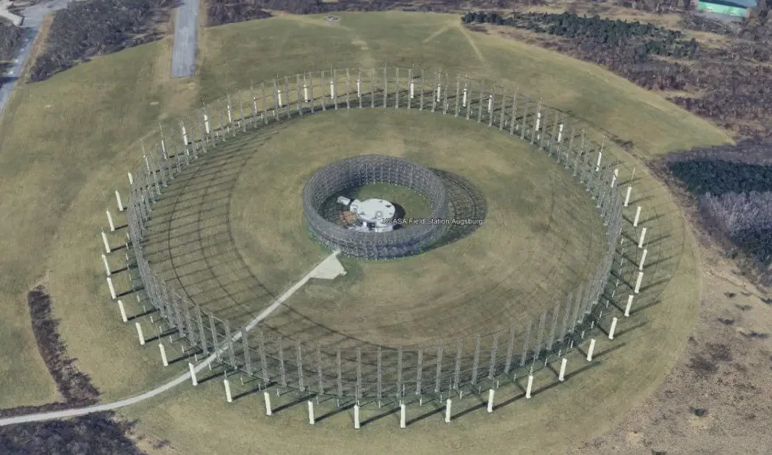По данным расследовательской платформы «Tochnyi», строительные работы начались в марте 2023 года, когда был вырублен лес, проведены земляные работы, возведены заборы и стены, а также подведены дороги. В настоящее время на спутниковых снимках можно увидеть как минимум шесть концентрических колец с центральной площадкой и охранным периметром. Немецкая пресса отмечает, что объект представляет собой типичную структуру кругового антенного массива (CDAA), предназначенного для военной радиоразведки и связи в диапазоне от нескольких МГц до 28 МГц.