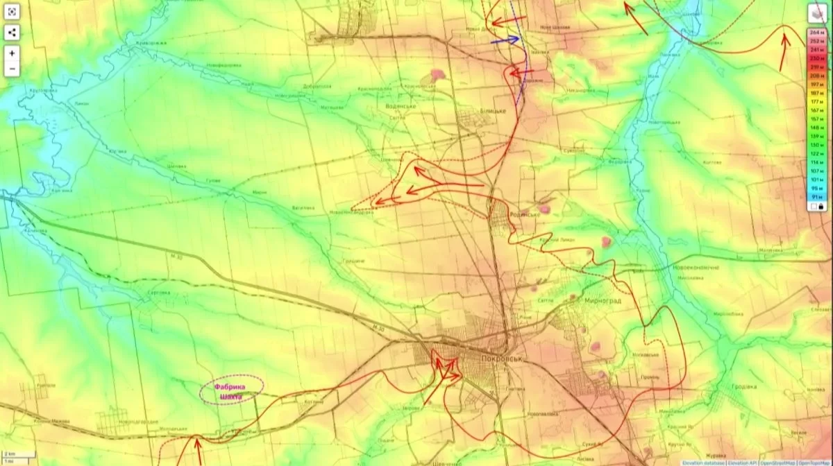 Одновременно с этим идут ожесточенные бои в Родинском, а также в районах Удачного и Молодецкого. Новый вектор атаки намечается из района Котлино в сторону шахты "Южно-Донбасская №3", успех которого откроет путь для окружения всей Покровской агломерации.