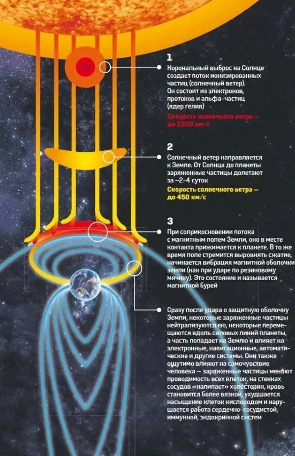 «Когда сгусток плазмы встречается с Землей, он не с земной поверхностью встречается, а с магнитным полем Земли», - объяснил он.