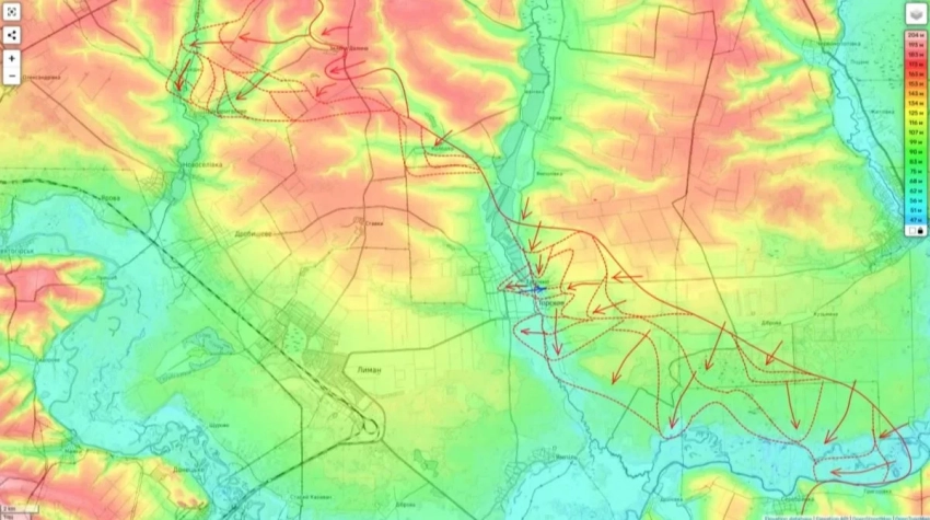 Продвижение зафиксировано и в районе Шандриголово, что открывает перспективу выхода к Лиману и перерезания сухопутных путей снабжения города. Переправы через Северский Донец регулярно уничтожаются российской авиацией и артиллерией.
