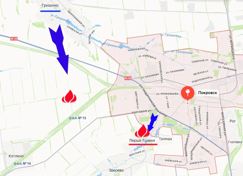Теперь противник пытается провести перегруппировку. Возможны новые попытки контратак, так как без контроля Первого Мая ему будет крайне сложно удерживать за собой западную часть Покровска.