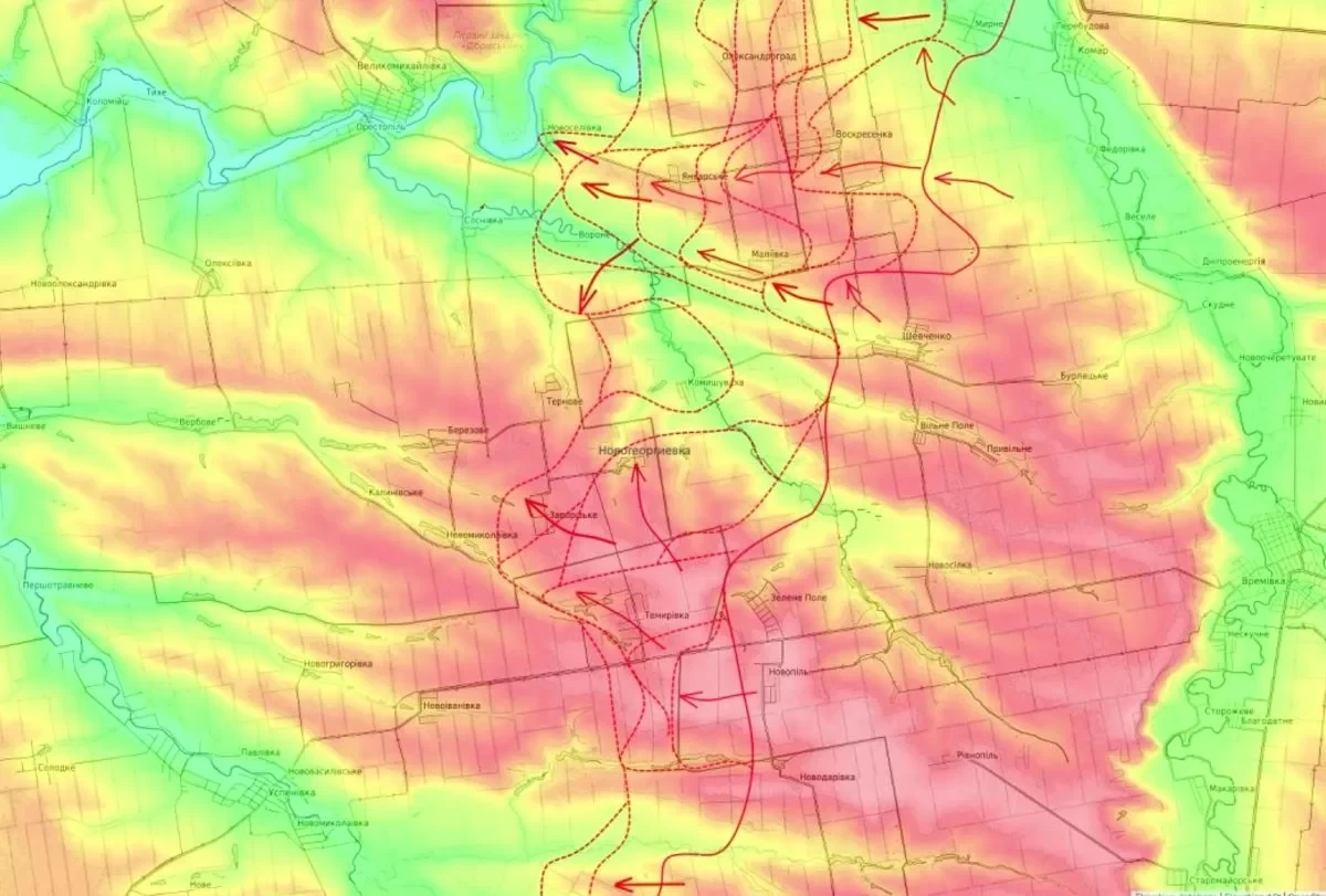 На направлении Новосёлки – Камышеваха (зона ответственности группировки «Восток») подтвердилась информация о полном контроле над Камышевой Ханановкой. Российские части продолжают продвижение к Великомихайловке, идут бои за Сосновку и Новосёловку. Несмотря на контратаки, ВСУ не удаётся остановить темп наступления ВС РФ. Более того, создаются предпосылки для захода в тыл Гуляйпольской группировки противника.