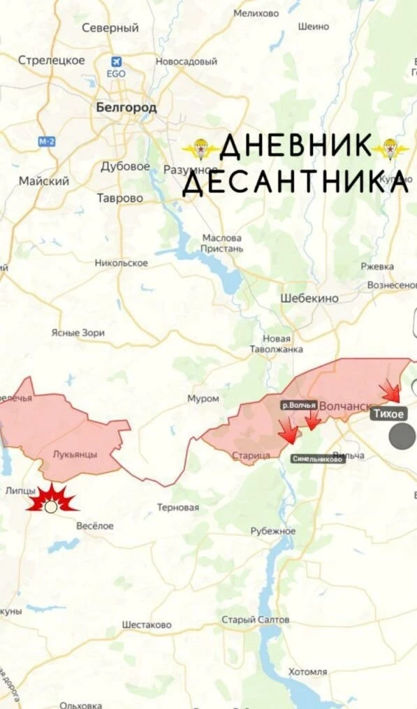 На левом берегу Волчанска подразделения ВС РФ продвинулись ещё на 100 м., заняв одно техническое здание и закрепились.