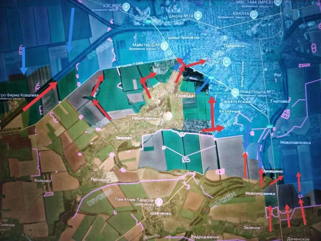 От Леонтовичей продолжаем выбивать врага в район Троянды и севернее.