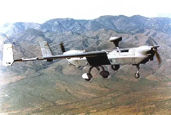 Аппарат, получивший обозначение Hunter, для компенсации возросшего взлётного веса был оснащён двумя поршневыми двигателями мощностью 56 л.с. При длине 7,01 м и размахе крыла 10,57 м полезная нагрузка достигала 90 кг. Крейсерская скорость полёта составляла 93-160 км/ч. Практический потолок – 5500 м. Дистанционное управление обеспечивалось на удалении до 125 км от наземной станции. Запас топлива в 290 литров позволял держаться в воздухе около 20 часов. БПЛА с максимальной взлётной массой около 880 кг мог осуществлять укороченный взлёт с грунтовой взлётно-посадочной полосы при помощи твердотопливного ускорителя и садился с использованием аэрофинишера.