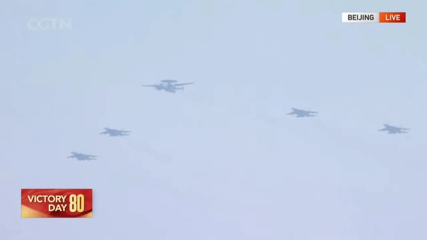 Наибольший интерес представляла смешанная эскадрилья истребителей. В неё вошли хорошо известные самолёты J-16, а также современные J-20 в одно- и двухместной версиях. Учебно-боевой истребитель J-20S присутствовал на параде первый раз. Кроме того, в парадный строй впервые включили перспективный истребитель J-35. Все новые образцы такой техники поступают на вооружение ВВС.
