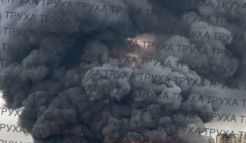 В Киеве - поражение хранилища топлива. Поднимаются клубы густого чёрного дыма.