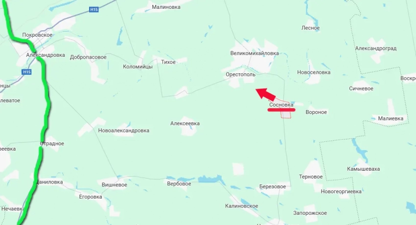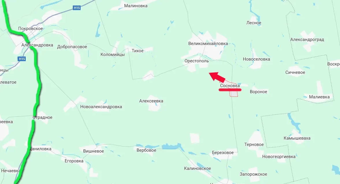Напомним, что ранее российские войска перевели под свой контроль соседнее с Сосновкой село Хорошее. Причём площадь Сосновки как минимум вчетверо больше площади Хорошего.