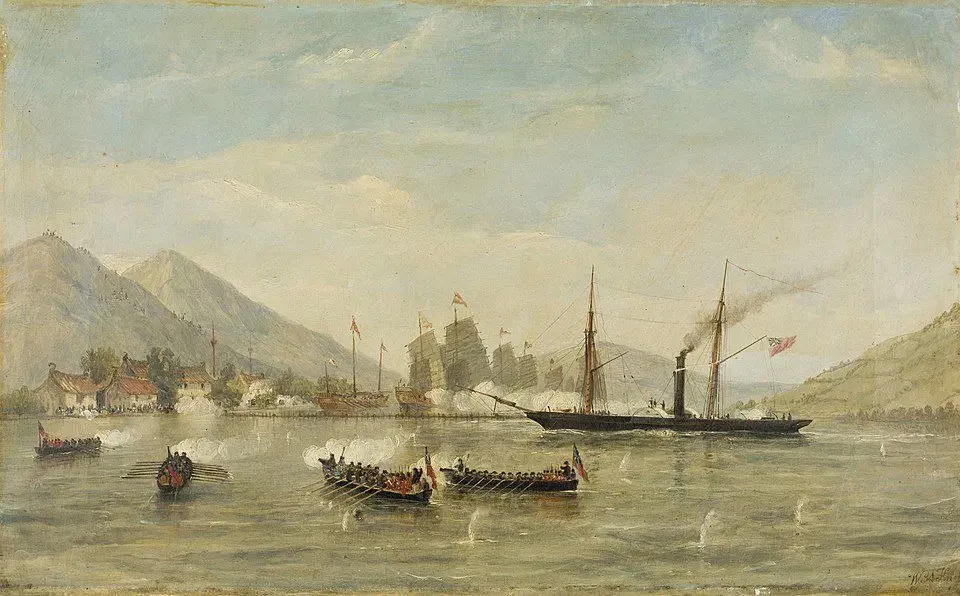 В общем, в ответ на взбрык императора англичане взяли в ходе «Второго сражения при Чуенпи» эти самые форты Чуенпи, прикрывавшие речной путь к Гуанчжоу (противостоять английской корабельной артиллерии устаревшие китайские пушки не смогли), и пошли на форт Хумэнь. Даогуан тут же объявил Великобритании войну и двинул войска в провинцию Гуандун. Но Цишань, ведший переговоры с Эллиотом, решил посидеть на двух стульях: он, с одной стороны, подписал «Чуаньбийскую конвенцию», в которой согласился на все требования англичан (включая передачу Гонконга, над которым просвещённые мореплаватели тут же подняли свой флаг), с другой, императору хитрый чиновник соврал, ничего не сказав об уплате денег и передаче острова. Когда правда вылезла наружу, Даогуан приказал Цишаня арестовать, а конвенция потеряла силу.