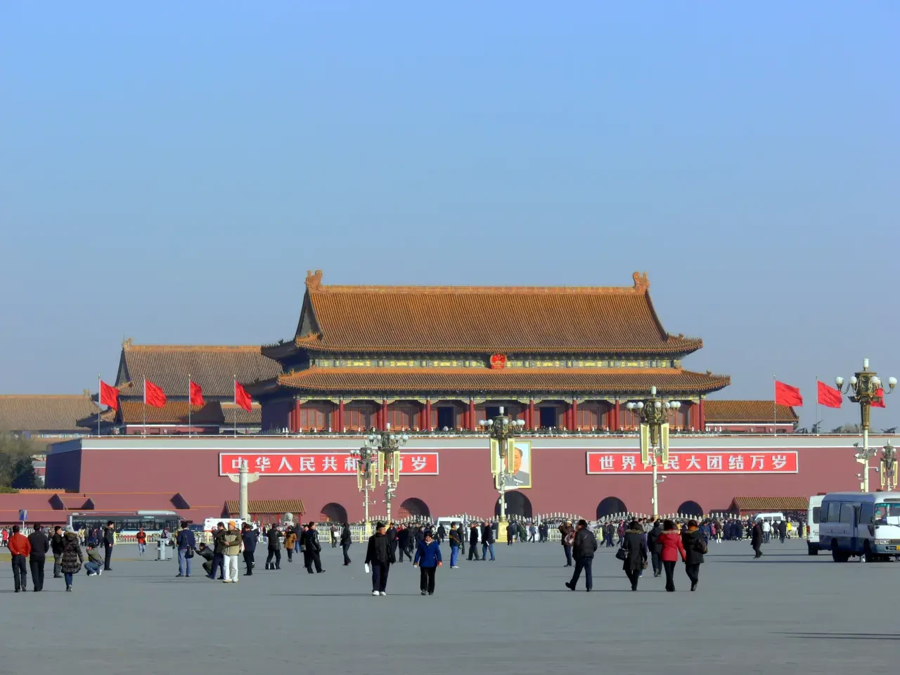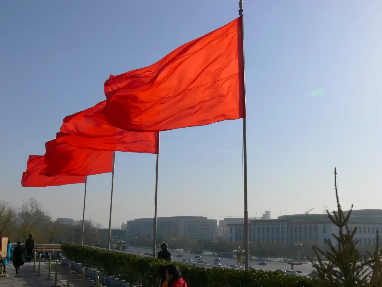 Красные флаги Тяньаньмэня. Фото автора.