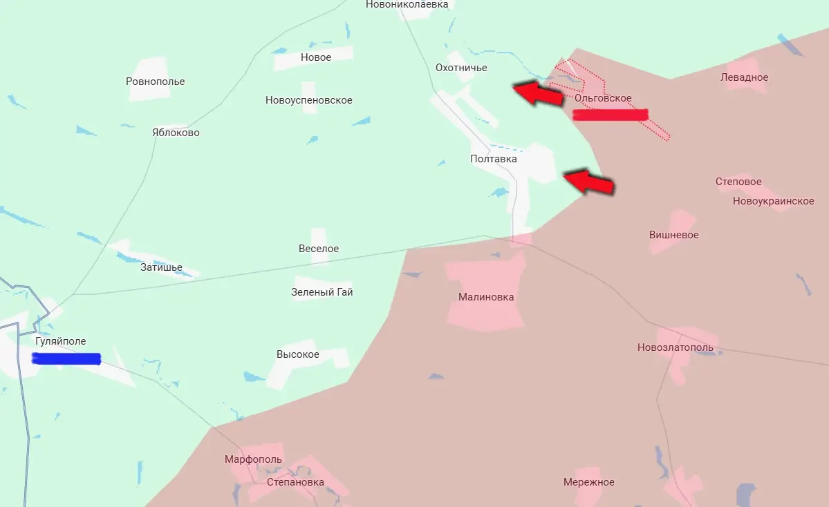 Освобождение Ольговки позволяет осуществить охват с трёх направлений достаточно обширных территорий Запорожской области к северо-востоку от Гуляйполя. Также это значимый выход к реке Солёная и приближение к реке Янчур на участке Новониколаевка (запорожская) – Полтавка. Противник близок к тому, чтобы потерять очередную свою рокадную дорогу – последнюю на подступах к Гуляйполю на данном участке фронта.