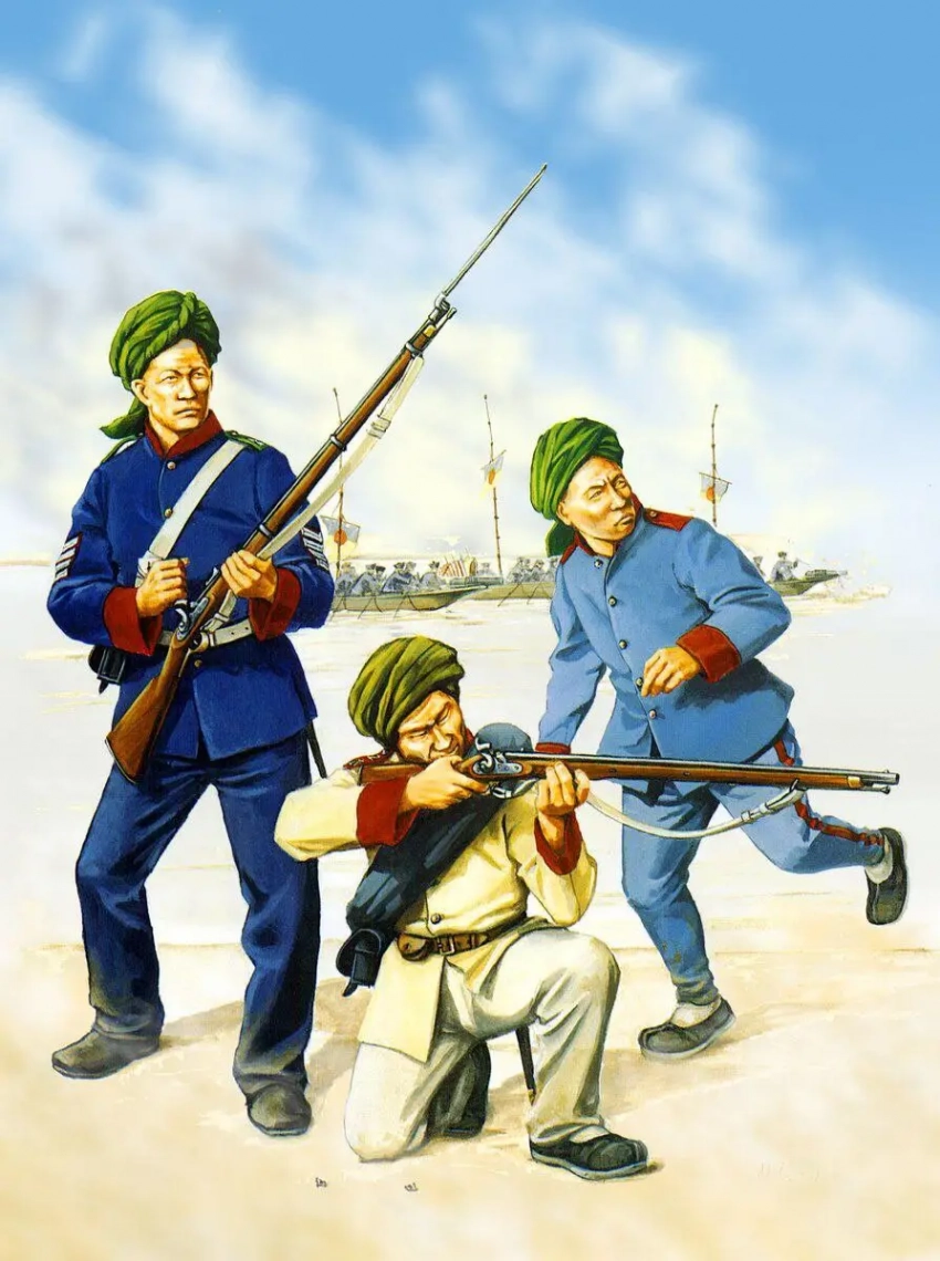 Дело в том, что маньчжурские армии разваливались под ударами тайпинов как карточные домики, но когда тайпины подошли к Шанхаю, местные олигархи обратились за помощью к американскому авантюристу Фредерику Таунсенду Уорду. Тот, за китайское серебро, навербовал отряд из 200 европейцев: моряков, дезертиров, авантюристов. Отряд, вооружённый современным оружием, отстоял Шанхай, выполняя роль пожарной команды: Уорд со своими людьми спешил туда, где цинские войска могли дрогнуть и отступить. Он отстоял Шанхай, после чего отбил у тайпинов Нинбо. Но самое страшное для повстанцев было то, что американец смог масштабировать свой успех. В 1861 году он сделал из европейцев своего отряда офицеров. А в качестве солдат набрал 1200 китайцев из Сунцзяна. Их обучили по всем правилам европейской военной науки, после чего повторили набор. В мае 1862 года у Уорда был уже 3000 хорошо вооружённых, обученных и мотивированных (платили американцу и его воинству китайские банкиры, и денег не жалели!) бойцов (включая отряд из 300 телохранителей-филиппинцев). Уорду присвоили звание мандарина 3-го ранга, а его отряду название «Вечно победоносная армия».