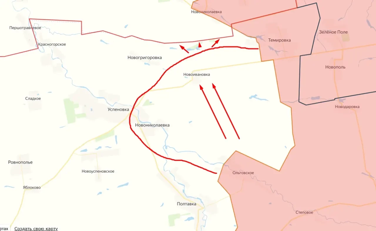 Так, по данным военкоров, российские штурмовики освободили от ВСУ село Новоивановка, которое располагается западнее н. п. Темировка, освобождённого ранее.