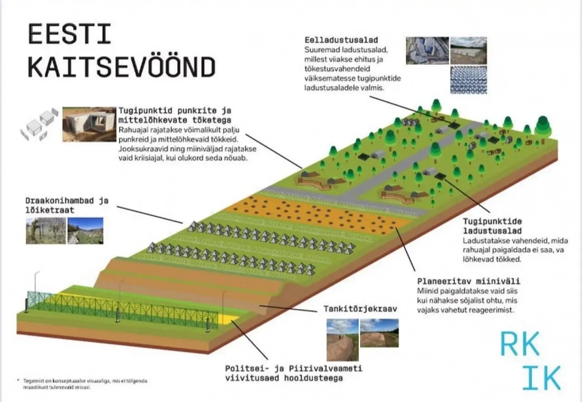 На восточном рубеже первыми начали возводить полноценные укрепления латвийские власти. В марте 2024 года они развернули постройку противотанковых рвов, зубов дракона, минных полей и наблюдательных постов. Бюджет в течение пяти лет составит €303 млн, плюс необходимо учесть €900 млн уже освоенных с 2022 года средств (но неясно, на что ушедших, так как работы стартовали гораздо позже и проходят по новой смете).