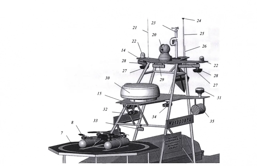 На крыше корпуса предусмотрена А-образная мачта для монтажа радиоэлектронных устройств. На борту «Макаровца» имеются система дистанционного и автономного управления движением, различные средства навигации, радиолокатор, эхолот, а также оптико-электронная станция и несколько устройств связи. Также предусмотрена возможность подключения дополнительных приборов разного назначения.