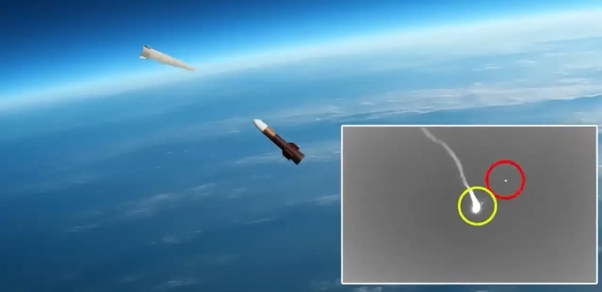 Поражение баллистической цели. В углу — съёмка с испытаний. Фото NCSIST
