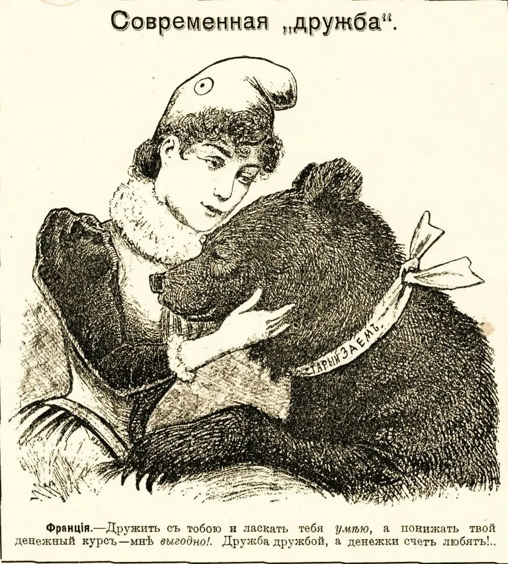 Со времен Наполеоновских войн отношения между Россией и Пруссией (а потом — Германией, II Рейхом) были исключительно дружественными. Это хорошо понимали во Франции, где на ратификацию Александром III 8 января 1894 года явно невыгодной нашей стране «военной конвенции», а затем вступлением в Антанту, откликнулись издевательской карикатурой, на которой разбитная девица Марианна спрашивает простодушного русского медведя: