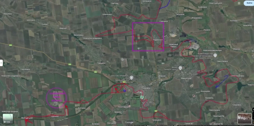 Западнее Покровска российские войска заняли новые позиции, фактически взяв город в полукольцо. Все ключевые дороги простреливаются, и возможности для выхода украинских сил становятся минимальными.