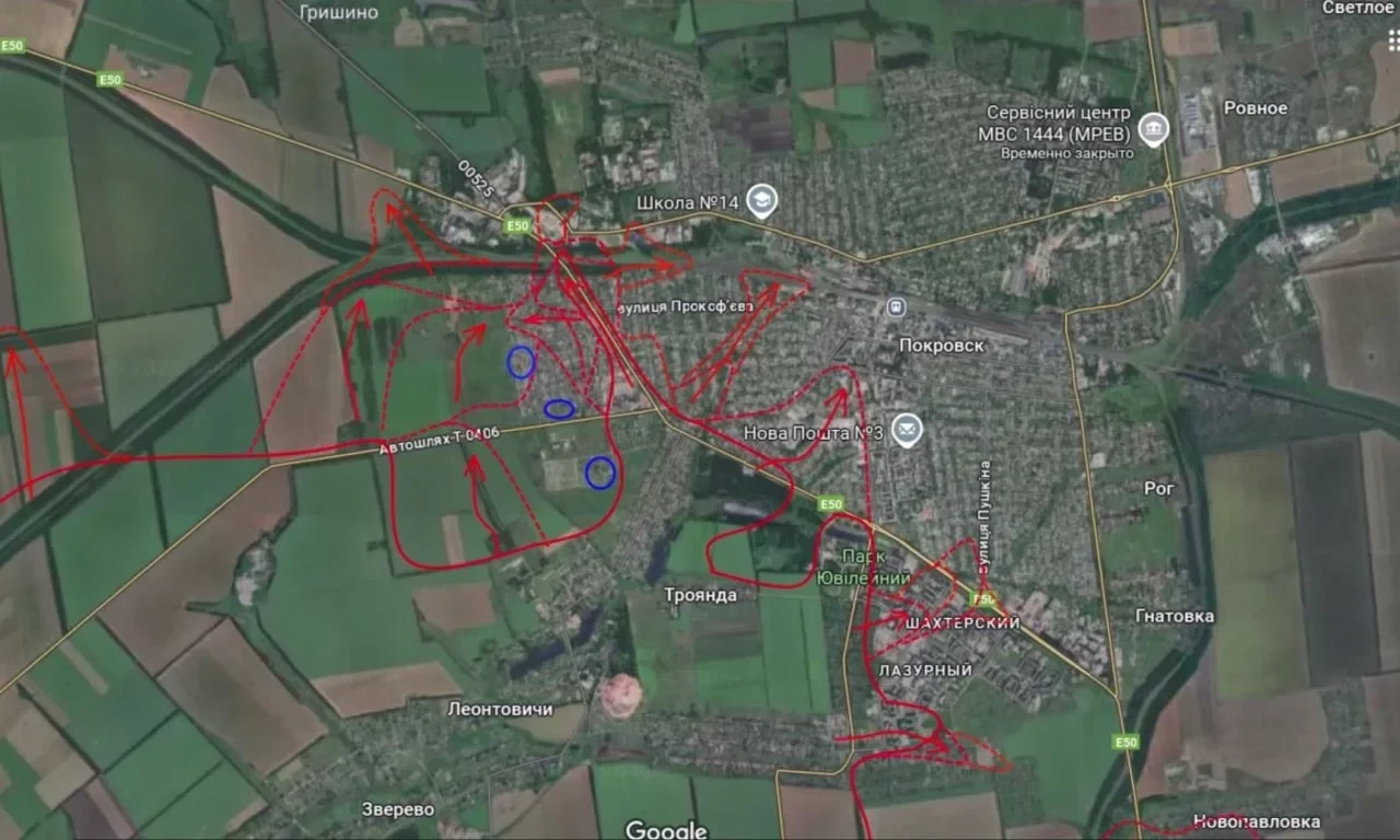 Непосредственно в самом Покровске российские штурмовые группы успешно действуют в западной промзоне, рассекая оборону противника. Важнейшим тактическим успехом стало рассечение одного из центральных районов одноэтажной застройки и выход к линии железной дороги в районе улицы Прокофьева.