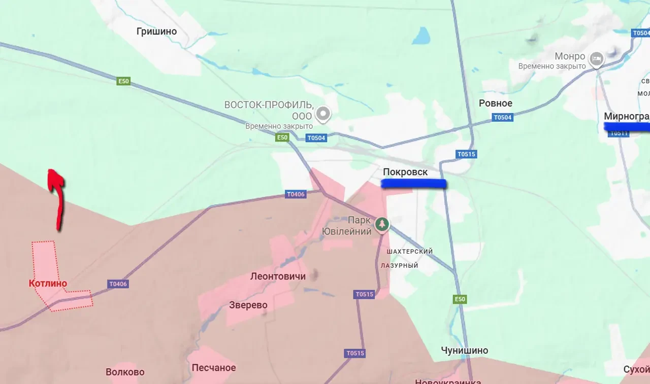 По сути, логистические маршруты в Покровск и Мирноград уже заблокированы. Не нужно быть военным экспертом, чтобы по карте понять – войска там находятся в полуокружении.