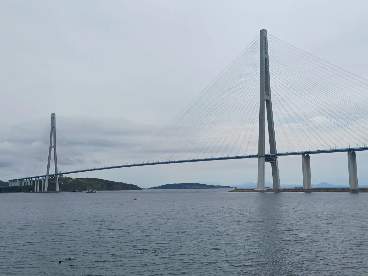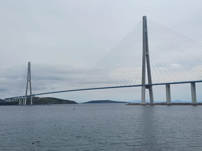 Вид на мост через пролив Босфор Восточный со стороны острова Русский