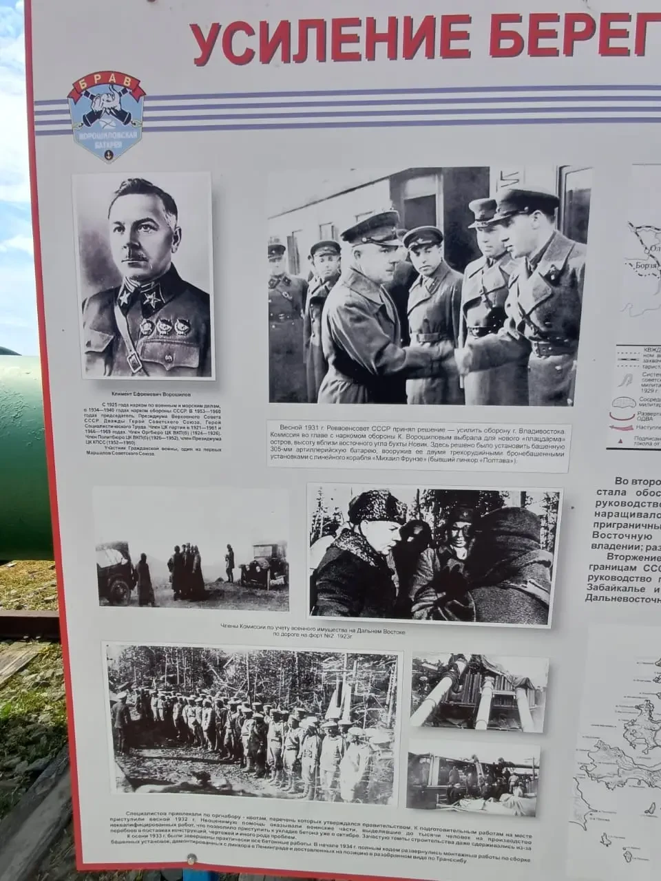 Одной из главных мер по усилению обороноспособности Владивостока стало строительство на острове Русский башенной 305-мм артиллерийской батареи, находящейся западнее бухты Новик, в двух километрах от южного берега острова. Впрочем, 305-мм орудия, размещённые в башенных установках, не были ни единственными, ни самыми крупнокалиберными из тех, что прикрывали Владивосток с моря. Советские специалисты вполне резонно считали, что стационарная батарея, координаты которой противник может получить при помощи агентурной разведки или аэрофотосъёмки, даже с учётом высокой защищённости не является неуязвимой. Поэтому в составе артиллерии Владивостокской крепости имелись мобильные железнодорожные орудия, три из них имели калибр 356 мм, три — 305 мм.