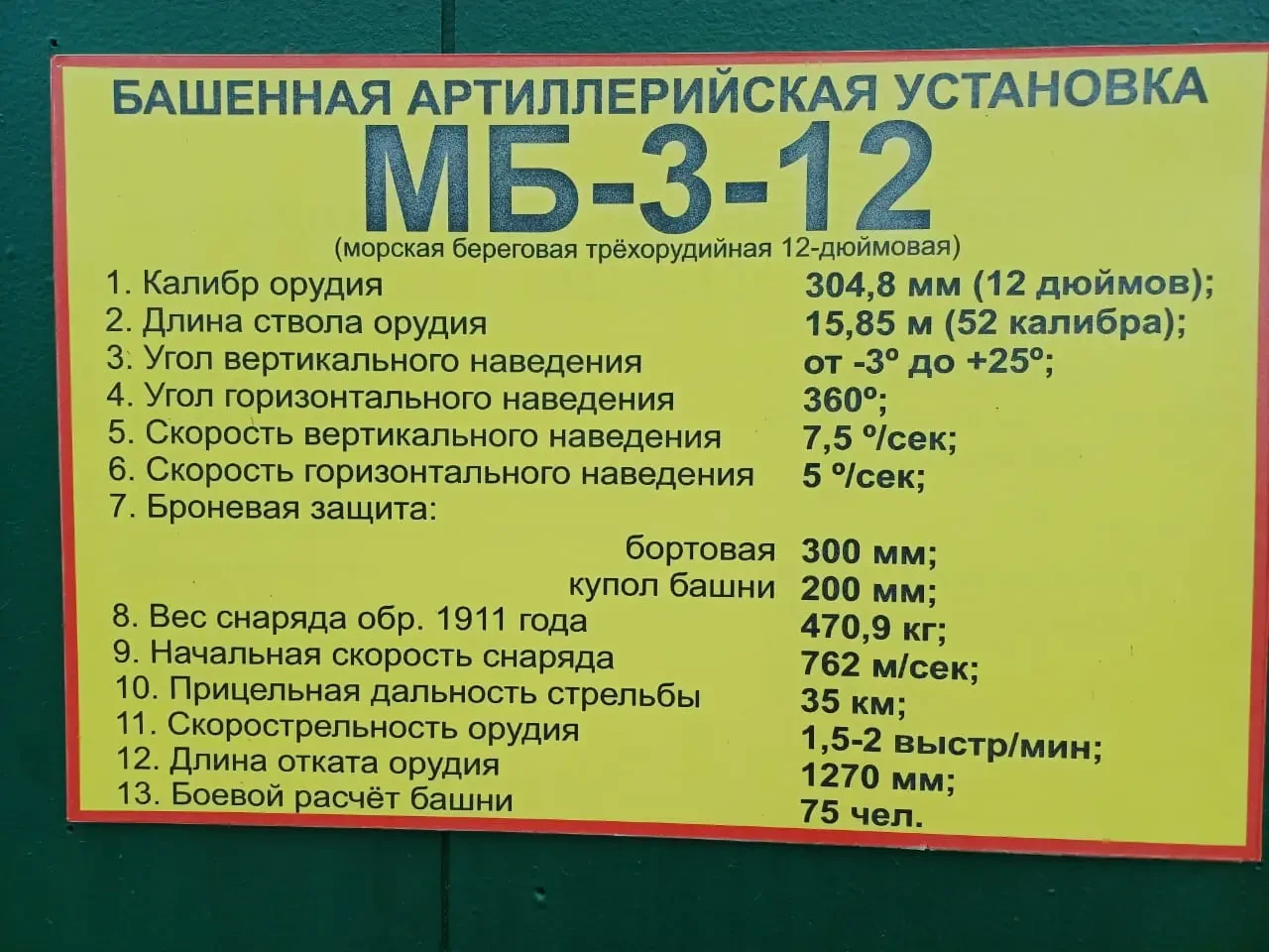Место для размещения 305-мм башенных артиллерийских установок выбирали очень тщательно, с таким расчётом, чтобы вспышки выстрелов в дневное время с вражеских кораблей были не видны, и по вспышкам нельзя было точно определить координаты береговой батареи.