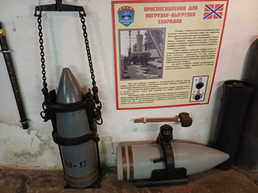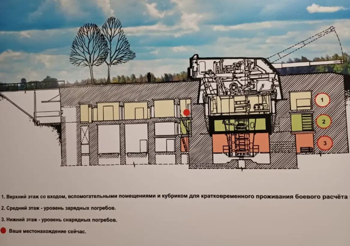 На первом подземном этаже до сих пор хранятся принадлежности для чистки орудийных стволов.
