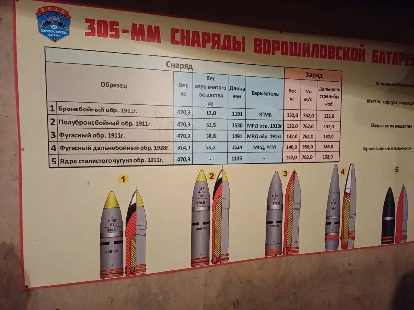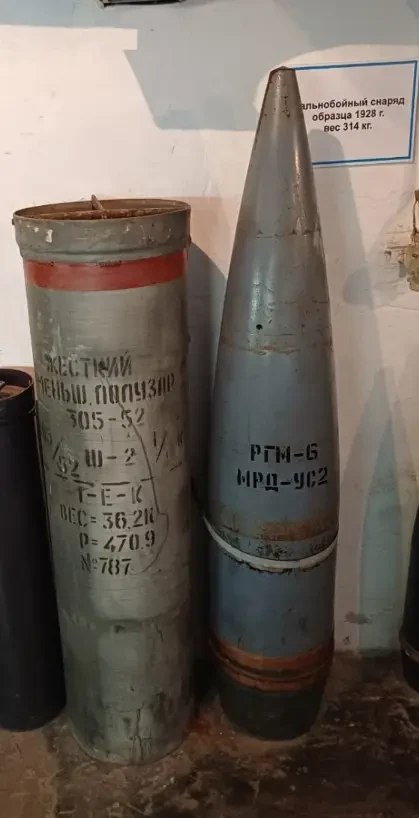 На третьем подземном этаже на стеллажах хранились 305-мм артиллерийские снаряды различных типов в количестве до 600 единиц.