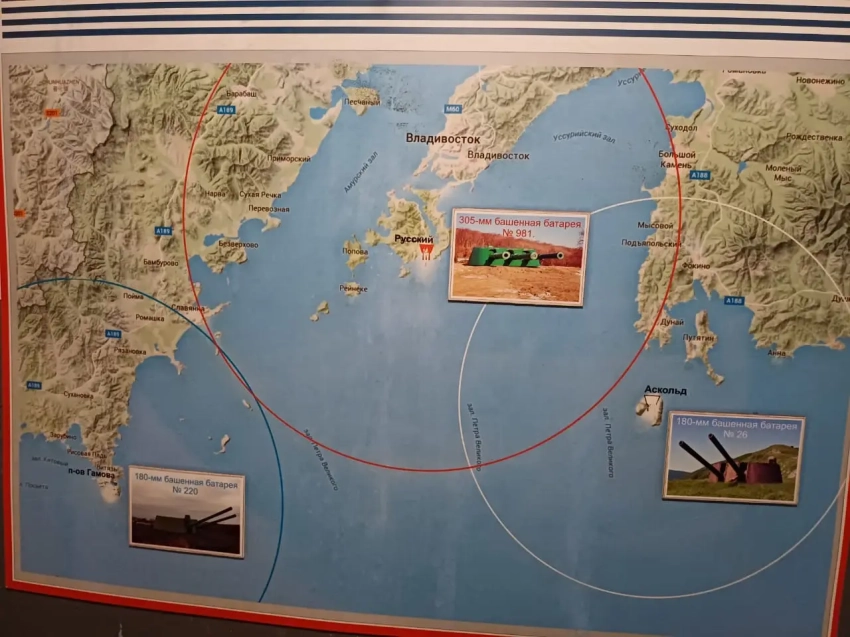 Такая дальность стрельбы в сочетании с 180-мм башенными артиллерийскими установками береговых батарей № 26 на острове Аскольд и № 220 на полуострове Гамова позволяло надёжно контролировать морскую акваторию на подступах к Владивостоку.