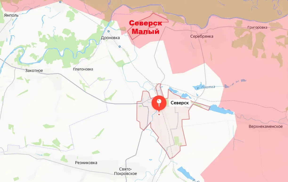 Противник подтверждает информацию российского Минобороны о переходе под контроль армии России Северска Малого (он же Верхний Северск). Это удалённая на несколько километров часть города Северска, расположенная близ населённого пункта Дроновка.