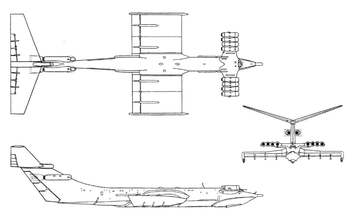 Силовая установка состояла из двух стартово-маршевых турбореактивных двигателей НК-8-4К, расположенных в носовой части, и маршевого турбовинтового двигателя НК-12МК, расположенного на хвостовом оперении. Эти двигатели являются морскими модификациями серийных двигателей самолетов Ту-154, Ил-62 и Ту-95.