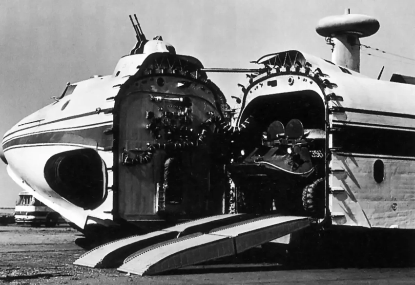 Испытания корабля-макета решили провести на Каспийском море. Почти месяц с отстыкованным крылом, накрытого маскировочной сеткой, «монстра» буксировали в плавучем доке по Волге в обстановке строгой секретности.
