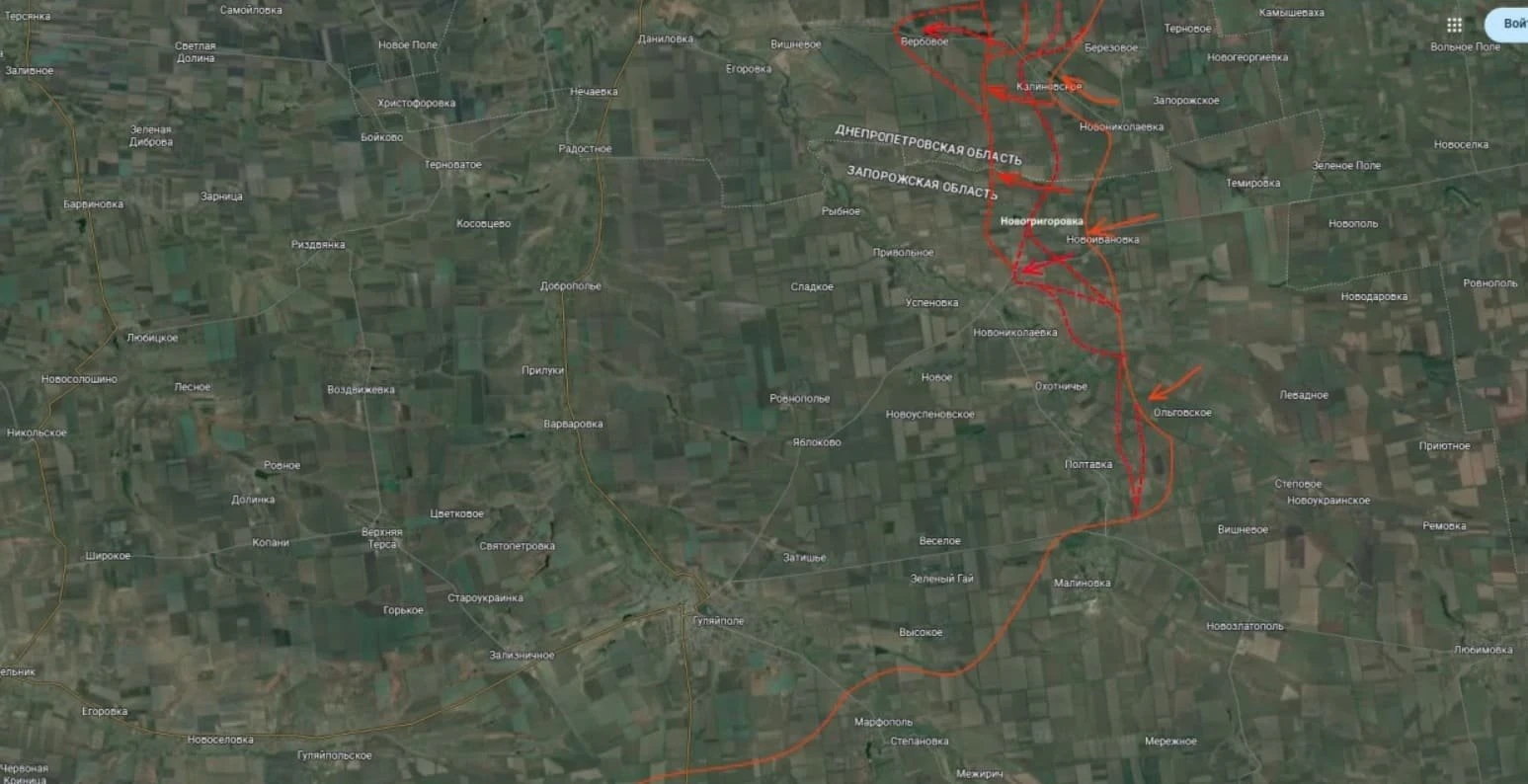 Продвигающиеся в тыл Гуляйпольской группировке ВСУ российские подразделения заняли днепропетровское село Вербовое, сообщил также Подоляка.