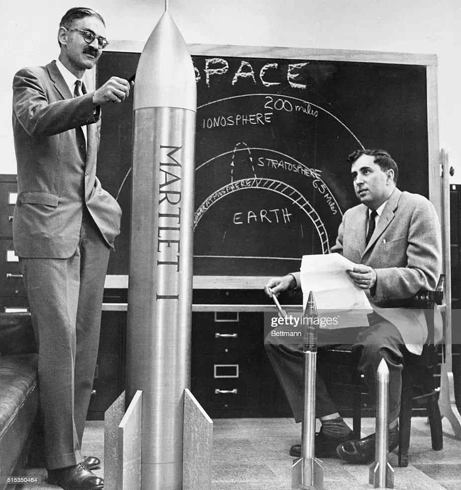 Дж. Булл (справа) и Дональд Морделл из Университета Макгилла демонстрируют снаряд Martlet-1. Фото Gettyimages