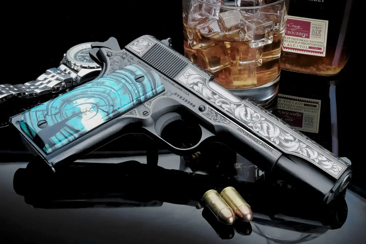 «Дубовый лист» - гравированный пистолет «Кольт Коммандер 1911». Производство компании SK Guns