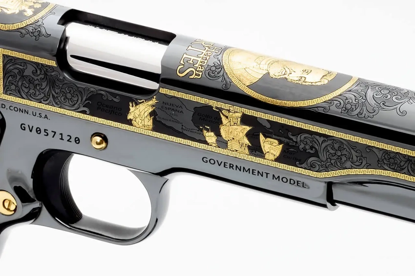 Пистолет из серии «Conquerors» с портретом Эрнана Кортеса. Производство компании SK Guns