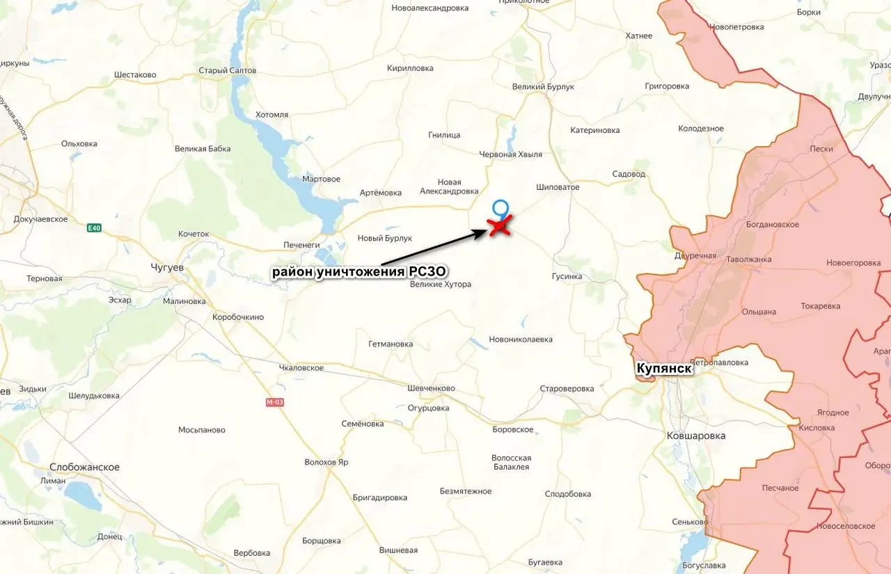 Позиции РСЗО противника были накрыты в районе населенного пункта Средний Бурлук Купянского района Харьковской области. На стартовой позиции ударами «Гераней» была накрыта пусковая установка РСЗО HIMARS, транспортно-заряжающая машина, а также до взвода личного состава. Вероятней всего, это расчет РСЗО и обязательная охрана, которая сопровождает данные системы постоянно. Как ранее сообщалось, основная задача сопровождения — не допустить попадания установки РСЗО в руки российских военных.