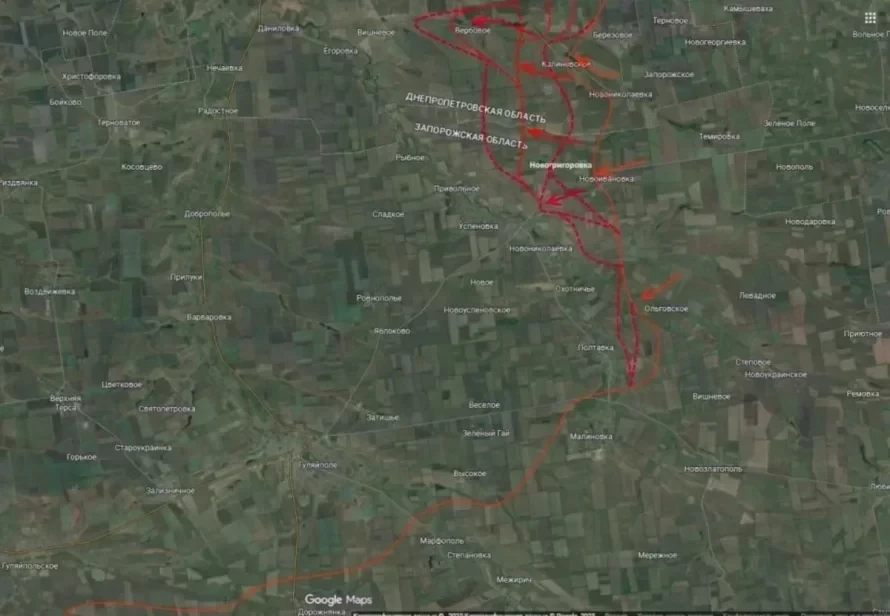 Параллельно с этим, группировка войск "Восток" совершает стремительный, по меркам СВО, рывок в тыл Гуляйпольской группировке противника. Продвигаясь от населенного пункта Вербовое, наши войска вплотную приблизились к важнейшей логистической артерии ВСУ - трассе, соединяющей Гуляйполе с Покровским.