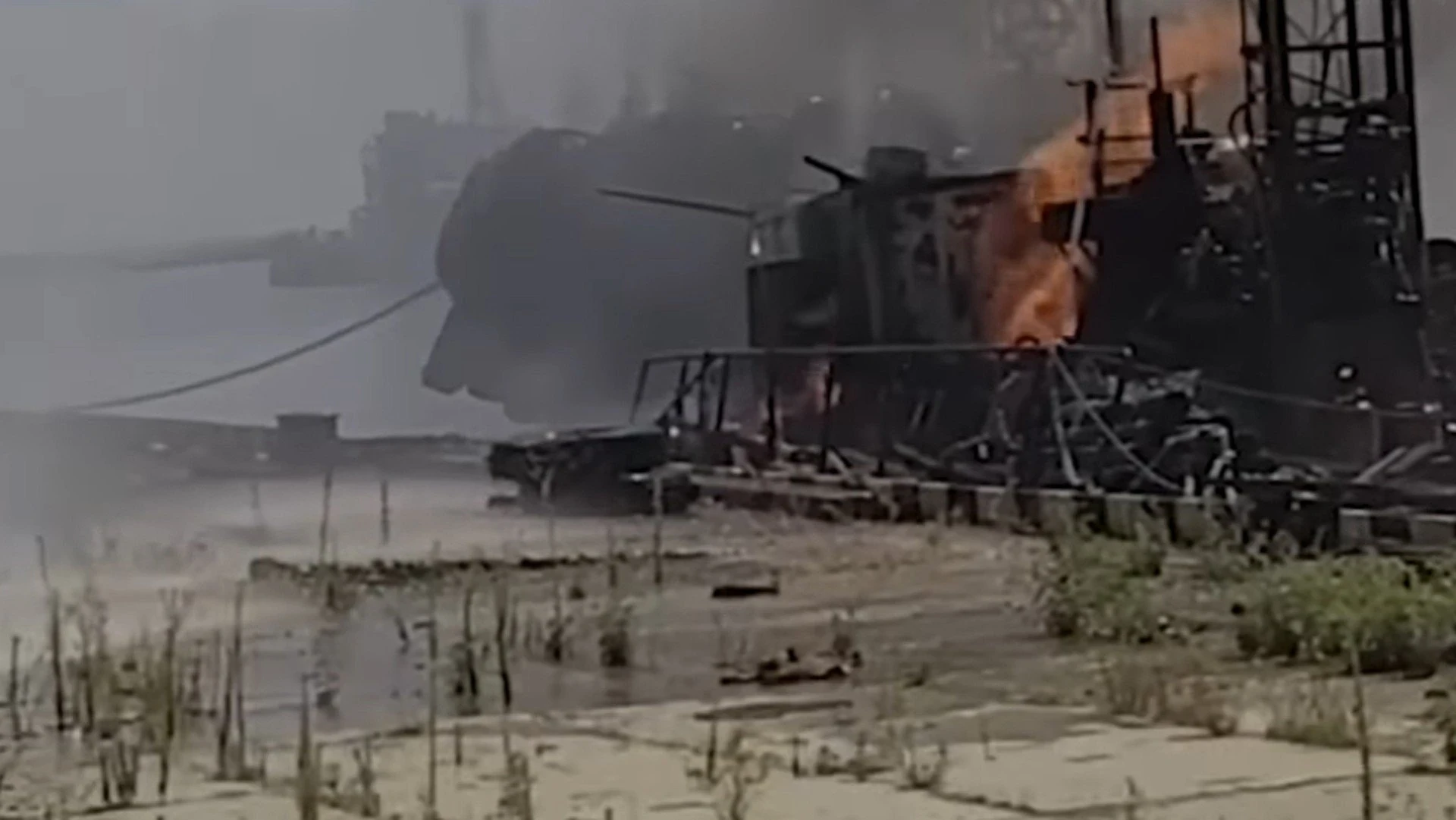 Опубликовано и видео, снятое очевидцами. В кадр попали момент атаки и последствия: яркие вспышки и густой дым.