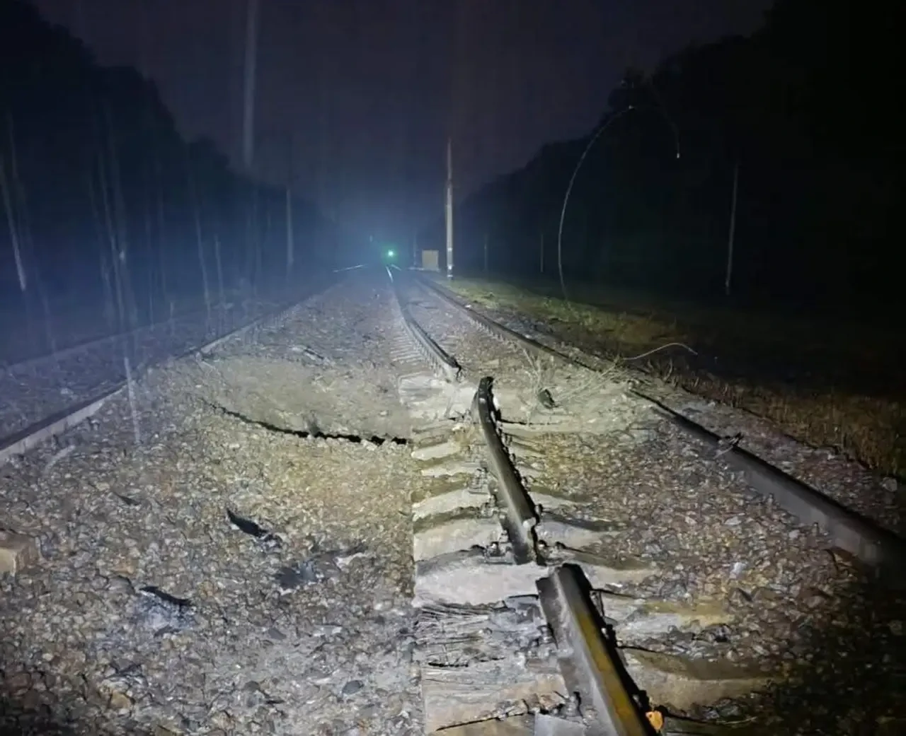 Появляются кадры с последствиями налёта «Гераней» к западу от Нежина. Там был атакован воинский эшелон противника. В результате удара был в значительной степени повреждён электровоз, а также нарушена целостность рельсового полотна (основное фото к материалу).