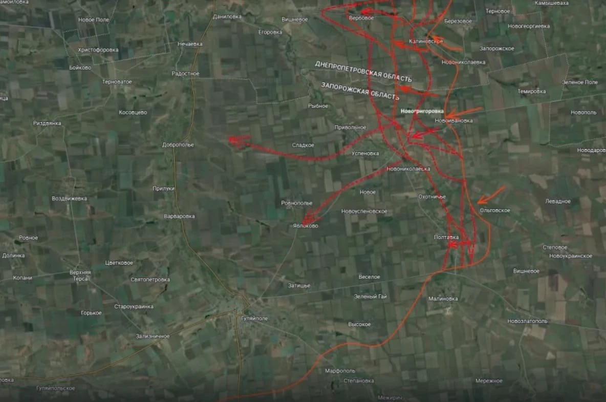 В Запорожской области войскам из России удалось войти в населенный пункт Успеновка, расположенный неподалеку от Гуляйполя. С этой информацией выступил военный блогер Юрий Подоляка в своем видеообзоре, размещенном в его Telegram-канале.