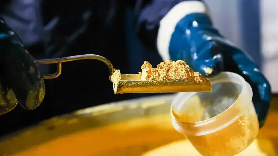 Но для того, чтобы уран действительно стал наполнителем циркониевых стержней, его надо добыть. В основном добывают способом выщелачивания, то есть закачивают в породу специальные растворы, которые вымывают уран, поднимают на поверхность, фильтруют и высушивают. Получается концентрат закиси-окиси урана, называемый «желтый кек» (yellow cake). Это очень грязный концентрат, который очищают, прокаливают, фильтруют и в итоге получают чистую закись-окись урана. Это вещество даже немного излучает.