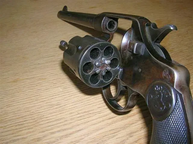В 1909 году «Фронтир» 1878 г. был заменен на «Кольт Новый Служебный» («New Service») с откидным барабаном. На фото представлен гражданский «Кольт» 1909 года калибра .455 калибра Webley (Eley). Во время катастроф под Верденом и на Сомме в 1916 году французская и английская армии испытывали острую нехватку огнестрельного оружия. Производители не могли угнаться за ритмом потерь оружия в полевых условиях. Поэтому Франция обратилась к нейтральной Испании с просьбой поставить ей 8-мм револьвера Лебеля, в то время как Англия, прежде чем в свою очередь обратиться к Испании, заказала в США более 200 000 револьверов калибра .455 и .38.