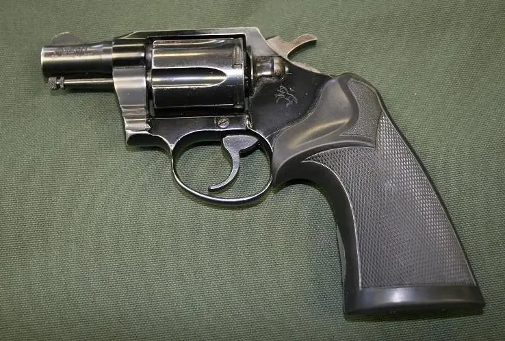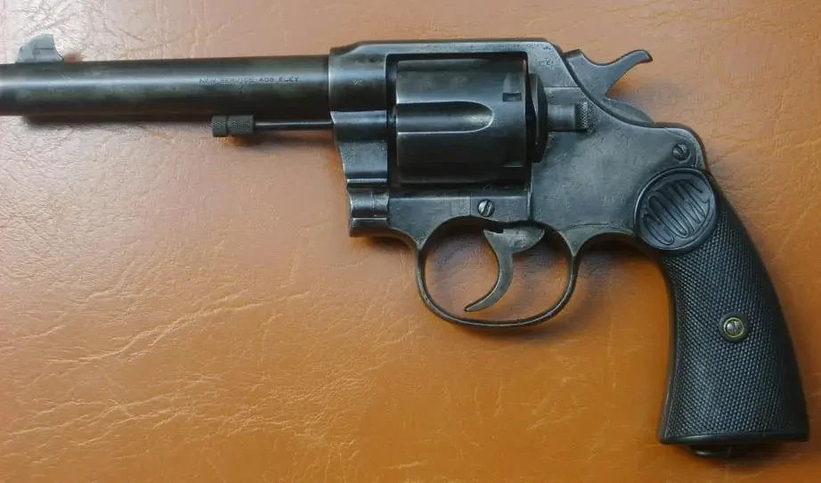 Револьвер «Кольт Новый армейский и морской» («New Army and Navy»), калибр .38 Colt, ствол 152 мм, образца 1904 года. «Офицерская модель» имела регулируемый задний прицел