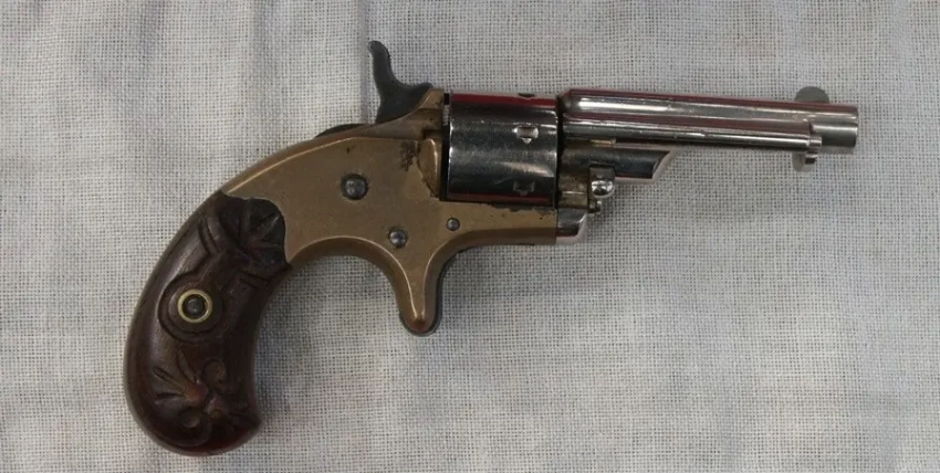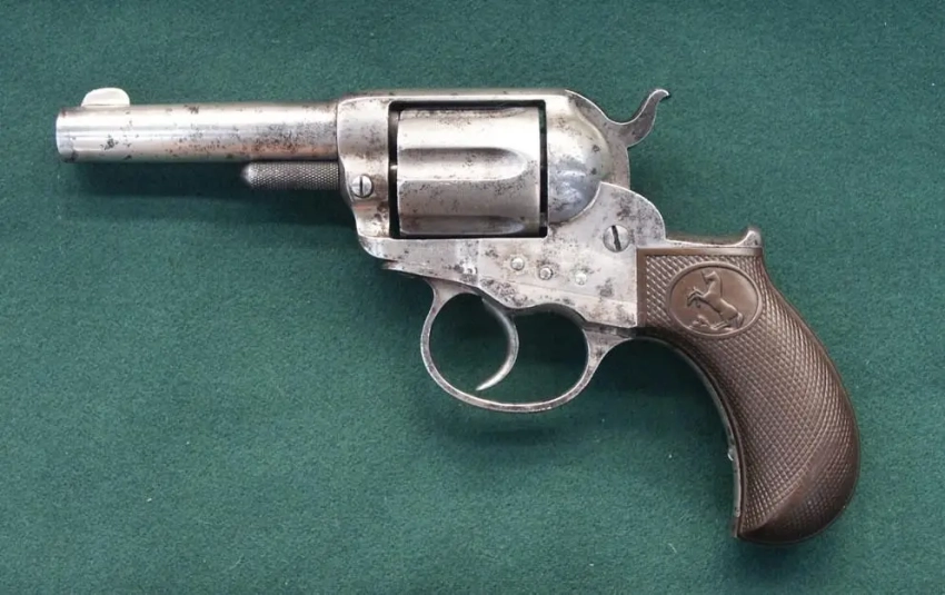 «Кольт Лайтнинг» двойного действия модели «шериф» был оснащен чрезвычайно редкими гуттаперчевыми рукоятками