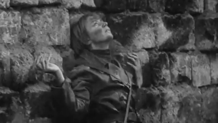 Герой В. Высоцкого поручик Брусенцов бросил винтовку и отказался от борьбы. Кадр фильма «Служили два товарища»